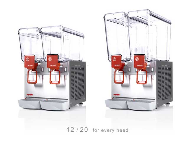 Asortiman Arctic Deluxe uključuje modele sa 1 do 4 bazena kapaciteta 12 ili 20 litara, izrađene od materijala otpornog na udarce, polikarbonata pogodan za hranu. Jednostavni, laki za upotrebu i raznovrsni, ovi dozatori su dizajnirani za hlađenje svih vrsta pića (prirodni voćni sokovi, kafa, čaj, bademovo mleko, itd.). Brzo i lako se rastavljaju radi savršenog čišćenja, štede vaše vreme i olakšavaju rad. Dostupan sa pumpom za fontanu (verzija “P”) ili lopaticom za mešanje (“AA” verzija).