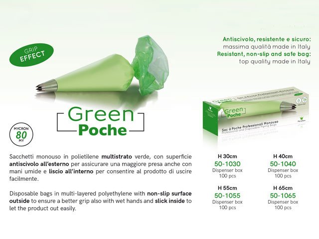 Kesice za jednokratnu upotrebu u višeslojnom polietilenu sa kliznom površinom napolju da se obezbedi bolje prianjanje i sa mokrim rukama dok je iznutra glatka površina kako bi se punjenje lako ispuštalo.